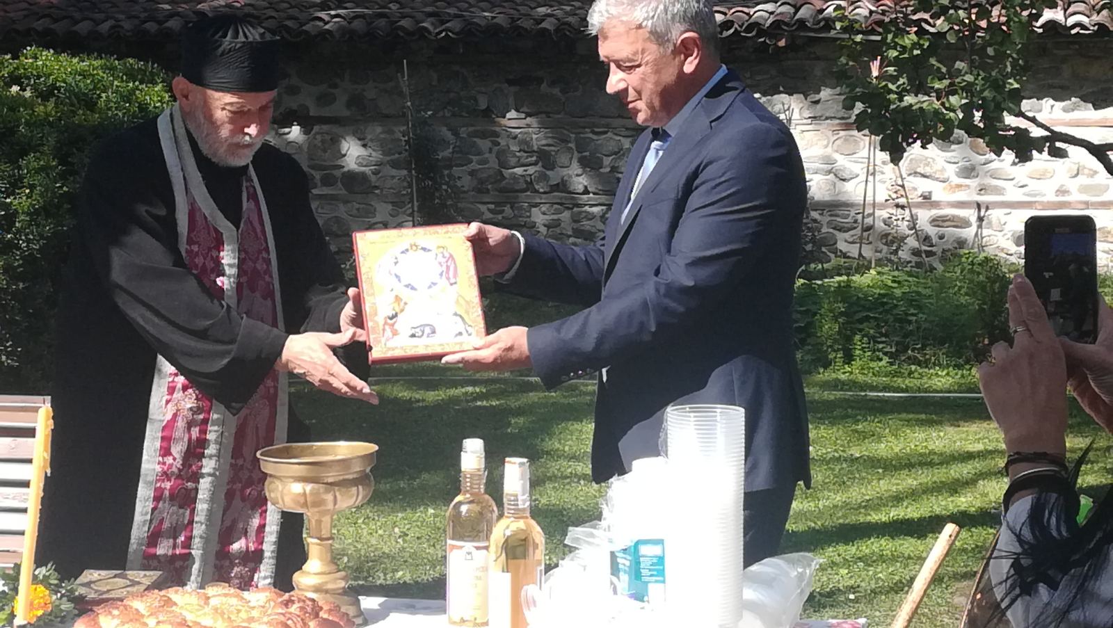 Кандидатът за кмет на община Благоевград инж. Румен Томов, кандидатите за общински съветници от коалиция „Граждани за Общината”, представители на войнски и патриотични организации дойдоха в храма, за да почетат паметта на героите, отдали живота си за свободата на Пиринския край. Инж.Румен Томов подари на храм „Въведение Богородично” икона „Преображение Господне”, изработена от благоевградския художник Борис Донев.
